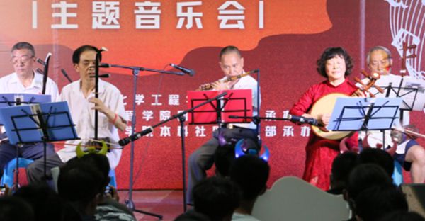 太阳,照耀大地,温暖人心,驱除人民的苦难与贫穷,李纯朴老师二胡演奏和陈钦德老师、邹政文老师伴奏的节目《北京有个金太阳》,拨动心弦,传递感情,演奏出人民对党的拥护与热爱。“我是一个兵”,看似简简单单的一句话,在陈钦德老师笛子演奏和张家藻、邹政文老师伴奏的节目《我是一个兵》,通过悠扬激昂笛声,彰显了浓浓的军民鱼水情和对党的赤诚。在《心中的向日葵》节目中,音乐会现场有本科社区党支部的师生党员和入党积极分子学生代表走向舞台,向12位老党员、老教师和7位军训教官献上最美的向日葵鲜花。向日葵,又叫向阳花,它的花语是永远向着太阳生长,我们要学做一株现实中的“向日葵”,将党作为我们的太阳,永远跟党走。