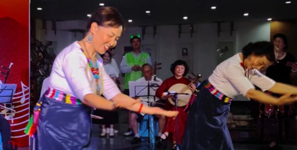 少年是纯真的浪漫,鲜花是自然的恩宠,花儿与少年是一桢动人的画卷,曾仲芳老师、陈钦德老师伴奏和邹政文老师板胡演奏的《花儿与少年》,让这一群银发“少年”将独具西北特色的民族音乐演奏的酣畅淋漓。华夏大地自古以来军民一家亲,李川娜老师和侯筑老师以及邱教官共同表演的舞蹈《洗衣歌》,捧世界上最纯净的圣水,采地球上最高尚的花蕊,表达由衷的敬佩之情。