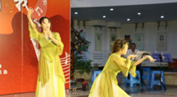 “既莫足与美政兮,吾将从彭咸之所居”。陈飖曲和李静雯同学表演的舞蹈《九歌》,将屈原浪漫的笔墨完美体现在舞台之上,展现了不畏困难,生生不息的民族精神,也表达了对祖国山河的无尽幻想。无论古代还是现代,我们对祖国山河的喜爱一点都没有少,徐卡秋老师的《映山红》,唱出了一个大写的中国、一个腾飞的中国,一个在世界的东方生机盎然的中国!百年的光辉历程,无论多少优美的歌曲,也唱不够我们对祖国的衷肠!伴随着《我和我的祖国》悠扬的旋律,所有活动现场师生挥舞着五星红旗,面颊滑落热泪,纵情歌唱祖国!此刻,作为千千万华夏儿女中的一员,此时,只能用一句话表达我们的心情:此生不悔入华夏,来世还做中国人!