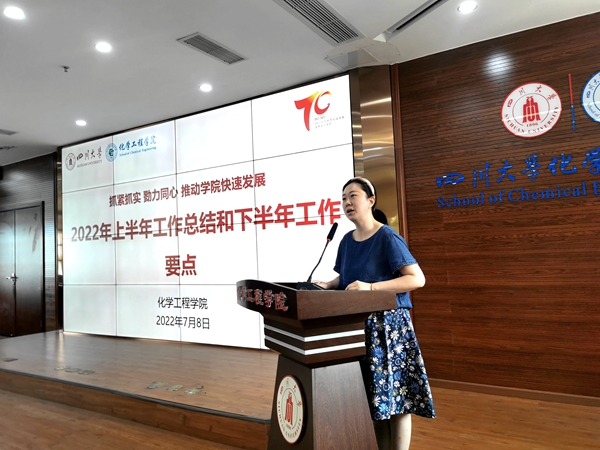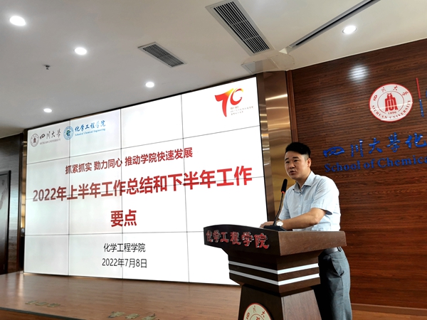 7月11日,德赢AC米兰中国官方网站在望江校区化工楼313报告厅组织召开全院大会,总结2022年上半年工作,部署下半年工作。学院全体班子成员、工会主席、杰出教授钟本和、离退休教师代表和全院教师等参加会议。会议由学院党委副书记兼纪委书记李德富主持。