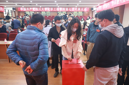 最后,李天友同志作大会闭幕发言。他说到,大会期间,全体党员代表认真履行权利和义务,顺利地、圆满地完成了党员代表大会的各项重要议程。希望学院全体共产党员团结一致,踔厉奋发,牢固树立“全院一盘棋”理念,紧紧围绕学习宣传贯彻党的二十大精神主题主线,抓好学校第九次党代会精神学习贯彻,落实学院第七次党代会各项任务,以矢志不渝的奋斗,全力实现建设一流化工学院的宏伟目标!
