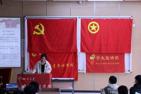 然后,张益凡以“推动绿色化工发展,促进人与自然和谐共生”为宣讲主题,向同学们介绍了中国式现代化是人与自然和谐共生的现代化,并给出了推动中国化工产业绿色转型升级的具体建议。