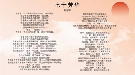 舞蹈串烧街舞《dance splicing》展现出青春的热烈、青春的节拍和青春的绚丽。舞台剧《风声》生动地还原了地下工作者的坚定信仰凝结而成的“风声精神”,学生秀《“化”样青春》分为两个部分,其中配音表演以幽默诙谐的方式,表现了同学们身为化工学子的自豪感;而化工团委学生会部长团及主席团的走秀环节妙趣横生,引起现场欢呼声不断;节目最后由化工团委学生会主席团演唱的《飞云之下》,展现出了化工学子的青春朝气。最后一个节目是朗诵《七十芳华》,真挚表达对德赢AC米兰中国官方网站七十华诞的祝福。最后进行抽奖环节,精致的礼品让被抽到的同学收到了诸多艳羡的目光。至此,主持人宣布晚会圆满结束。