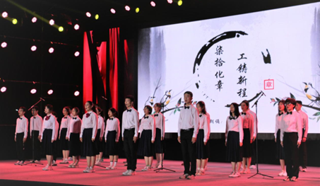 乐队表演《viva la vida》曲风由低潮逐渐转入高潮,诠释了新时代青年对生命的热爱。说唱《晒》燃炸全场,激昂的台风将晚会推向了顶峰,唱出了时代的最强音。吉他伴唱《成都》独特的音色和歌曲透露的柔情让观众深深被吸引。舞蹈《hypeboy & talk that talk》中,曼妙的舞姿展现出化工学子的青春活力,将全场气氛引向高潮。合唱《晴天》很好地表现了校园时代的青涩和甜美纯真的爱情,虽有遗憾亦是成全。独唱《天后》歌声动情,柔肠百转,深深打动了在场观众。在随后的授牌仪式中,王辛龙老师和李象远老师为研究生和本科生代表颁布了名牌,授牌包含着责任与期望,从即刻起“川大化工人”身份将与大家荣辱与共、相伴一生,至此第二篇章结束。