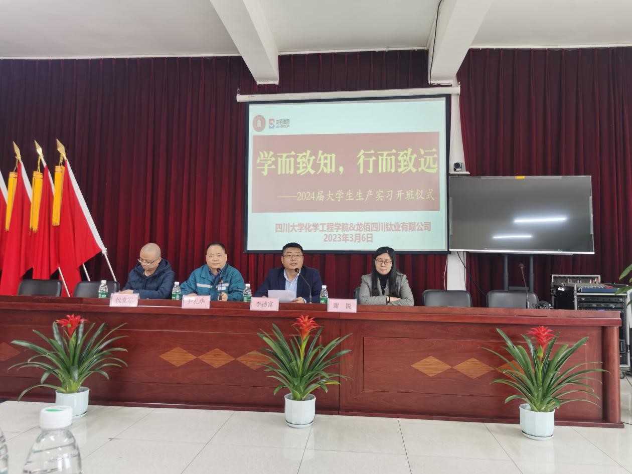 龙佰集团股份有限公司总裁助理尹礼华先生、龙佰四川钛业副总经理代堂军先生、化工学院党委副书记兼纪委书记李德富教授、化工系党支部书记谢锐教授共同参与了开班仪式。尹礼华先生对德赢AC米兰中国官方网站化工学院师生的到来表示了热烈欢迎,就实习过程的安排和同学们进行了交流。李德富教授对龙佰钛业表示了感谢,提出希望加强双方在科研攻关、人才培养等方面更深层次的合作。