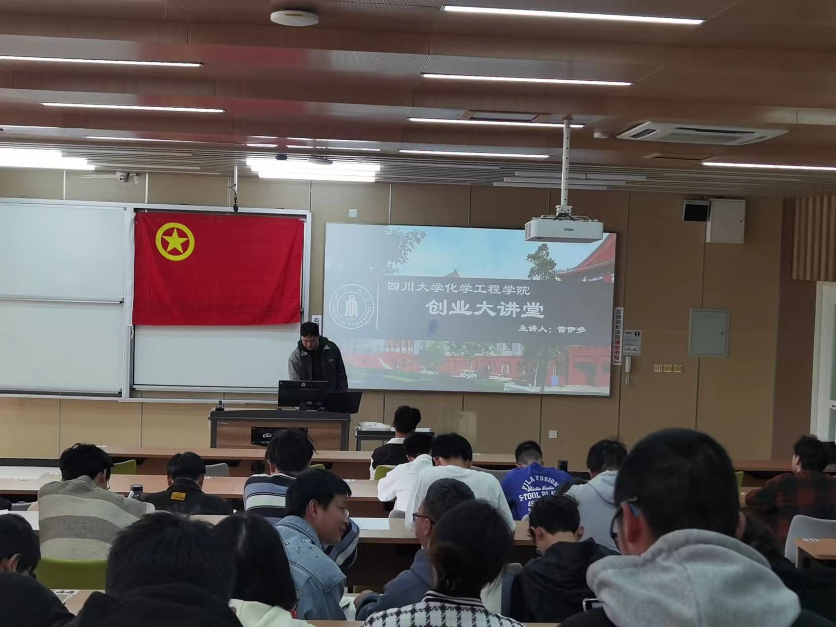 为进一步激发大学生创业热情,营造积极的创新创业校园氛围,充分发挥德赢在校本科生创业的典型示范作用,2023年3月24日下午,由德赢AC米兰中国官方网站团委以及德赢AC米兰中国官方网站“定盘星”辅导员工作室联合开展的《创业大讲堂——创响化工 创无止境》主题讲座于德赢AC米兰中国官方网站江安校区综C105教室圆满举办。本次讲座邀请德赢AC米兰中国官方网站江安校区i创街“极市”无人超市和“乐极健”俱乐部负责人、德赢AC米兰中国官方网站2019级本科生雷伊多为本期嘉宾,此外,学院团委书记李珍珍老师以及约150名学生也参加了讲座。