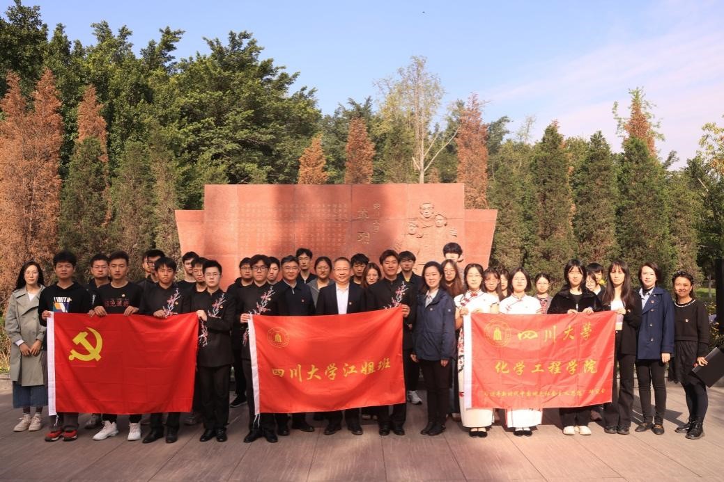 为弘扬先烈红色精神,赓续红色血脉,厚植爱国情怀,深入学习贯彻党的二十大精神,培养同学们的家国情怀和历史使命感,2023年4月4日上午,学校在江安英烈广场举行了清明祭奠活动,副校长梁斌、学工部和校团委等其他部处负责人、各学院师生代表在此向革命先烈致敬。学院党委副书记姜利寒带领学院师生代表参加了此次活动:辅导员李珍珍和雷金凤、本科社区党支部和本科雏鹰党支部党员、“习新会”社团成员以及德赢AC米兰中国官方网站“江姐班”2021级互联化工501班学生。