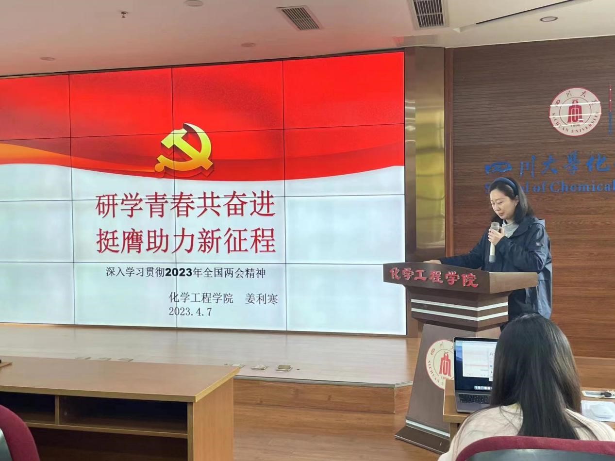 4月7日14:30,由德赢AC米兰中国官方网站研究生工作部主办,德赢AC米兰中国官方网站研究生团委研究生会思想政治教育服务中心、轻工科学与工程学院和德赢AC米兰中国官方网站团委研分会联合承办的“研学青春共奋进,挺膺助力新征程——深入学习贯彻2023年全国两会精神”形势政策大讲堂在德赢AC米兰中国官方网站望江校区德赢AC米兰中国官方网站楼313会议室举行。活动邀请到了德赢AC米兰中国官方网站党委副书记、副研究员姜利寒老师和德赢AC米兰中国官方网站轻工科学与工程学院党委副书记、纪委书记冯国涛老师为主讲嘉宾,100余位师生参与了此次讲座。