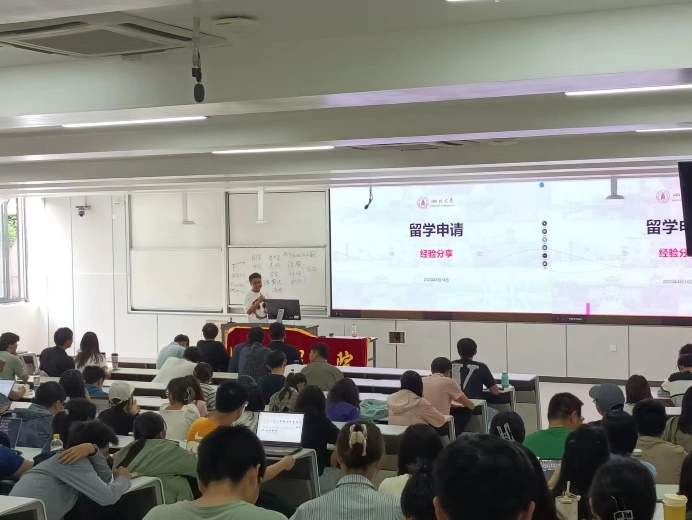 为使2020级本科生深入了解留学深造,把握留学形势,明晰留学申请流程,帮助他们早做准备,申请到理想院校,德赢AC米兰中国官方网站团委及“定盘星”辅导员工作室于2023年4月14日下午在江安校区综合楼C座107教室成功举办“升学大讲堂”之“本科生留学经验分享交流会”。本期“升学大讲堂”邀请嘉宾为党委副书记姜利寒、2019级鲍楚儿、2019级廖鑫柯、2019级蒋明媛;此外,2020级辅导员雷金凤老师以及全体2020级本科生参加本次活动。
