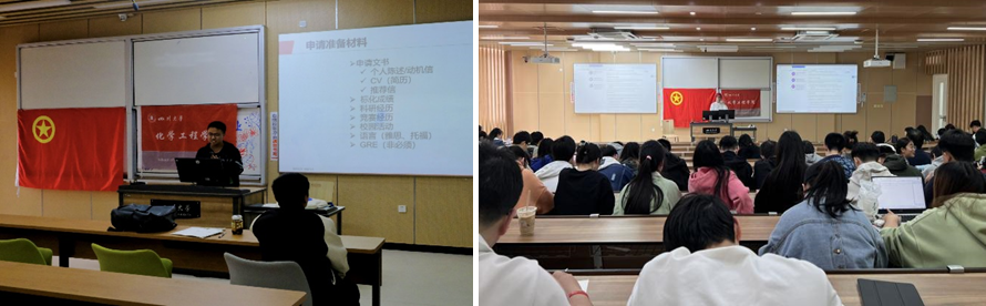 为促进学院学风建设的深入开展,进一步推动良好学风的构成,围绕学生升学深造的发展需求,帮助学生对升学进行自我探索并为自己选择合适发展方向,提升综合竞争力。学院团委和德赢AC米兰中国官方网站“定盘星”辅导员工作室联合举办“升学大讲堂”之“留学+考研”经验分享会,于2023年4月7日下午在江安校区综合楼C座105、104教室顺利落下帷幕。本期“升学大讲堂”邀请嘉宾为2019级廖鑫柯、欧盼、唐宗剑、刘会如、佘希硕;此外,2021级辅导员李珍珍老师、付率老师以及近300名本科生参加本次活动。