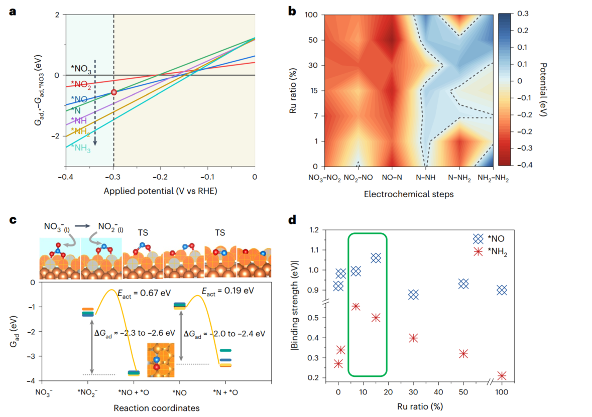 量子化学模拟计算在解析微观尺度上表面催化反应及材料特性等领域中发挥重要作用。近日,德赢李红娇特聘副研究员与天津大学张兵教授、于一夫教授团队合作,负责三步接力催化实现超低过位硝酸盐电还原过程的理论模拟工作,以共同一作在Nature Catalysis上发表相关工作论文。