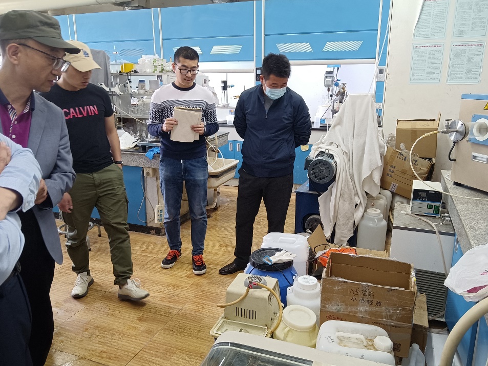 为进一步加强实验室安全管理,提高师生的实验室安全意识,确保“五一”假期间化工学院实验室的安全正常运行,2023年4月27日,学院郭孝东院长带队,组织学院安全秘书胡毅、安全专家组成员李万舜、陈瑜、吕松及工程实验教学中心李季、魏竭等对江安校区第一基础实验楼B座的实验室进行了安全检查。
