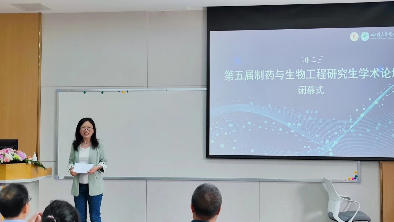 论坛最后,德赢AC米兰中国官方网站制药与生物工程系主任巨晓洁教授对本次论坛进行了总结致辞。她首先对本次论坛获奖同学表示热烈的祝贺,对论坛专家委员会和组委会的热烈支持表示衷心的感谢。随后,她肯定了此次论坛参会报告的质量,认为此次论坛汇报与评议环节对参会同学是一次很好的锻炼,希望同学们在此次交流之后能继续提升自身科研素养,积极建立学术交流网络,在交流中碰撞出创新的火花,结出更丰富的科研硕果。最后,她再次感谢到会的各院校老师和同学,祝愿同学们学有所成,并期待下次的相聚。