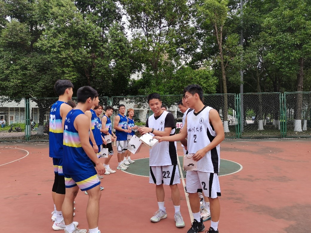 图3“友谊第一,比赛第二”化工学院球员向力航学院球员赠送纪念品