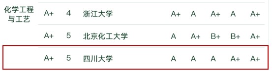 其中,化学工程与工艺专业位列全国第5,获评A+级;过程装备与控制工程位列全国第8,获评A级;制药工程专业位列全国第2,获评A+级;生物工程专业位列全国第8,获评A级。