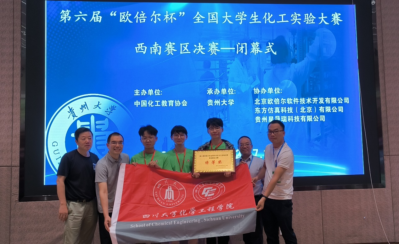 由刘长军、程远贵和王袁隆三位老师带队,德赢郭炳邑、杨俊和陈松三位同学组建的“川山甲队”于2023年7月13日-7月16日赴贵州大学与来自西南赛区的共48支队伍一起参加了第六届全国大学生化工实验大赛西南赛区决赛。