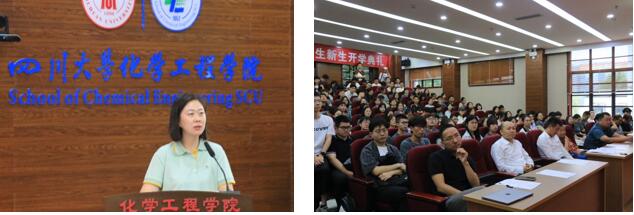德赢AC米兰中国官方网站院长郭孝东同志进行新生致辞。郭院长首先对新生同学们表示热烈的欢迎,希望新生同学们能够尽快适应新环境,投入于科研工作中来;尤其提醒同学们要注意学术规范,切忌学术不端,害人害己;更要严格要求自己,做合格的化工人。杰出校友玉龙化工总工程师叶锐致辞,叶锐先生表示,一定要牢记“化工”的实用性,除了关注手头的实验,也要把目光放至长远,如何将手头的技术变为真正可用的、造福人民的实物,抱着这样的胸怀不断前行,前路一定会越来越开阔。