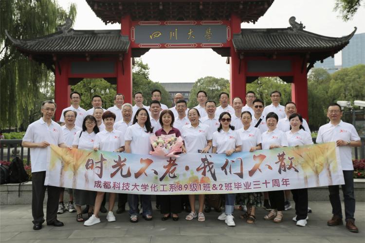2023年9月8日,阳光明媚,绿草茵茵,德赢AC米兰中国官方网站(原成都科技大学)89级化工系化学工程与工艺专业1班和2班的同学30余人在毕业30年后相聚母校,激动和感动溢于言表。德赢AC米兰中国官方网站时任辅导员陈明惠老师、学院党委副书记兼纪委书记李德富、校友联络人高敏老师热情地接待了万里归来的同学们。