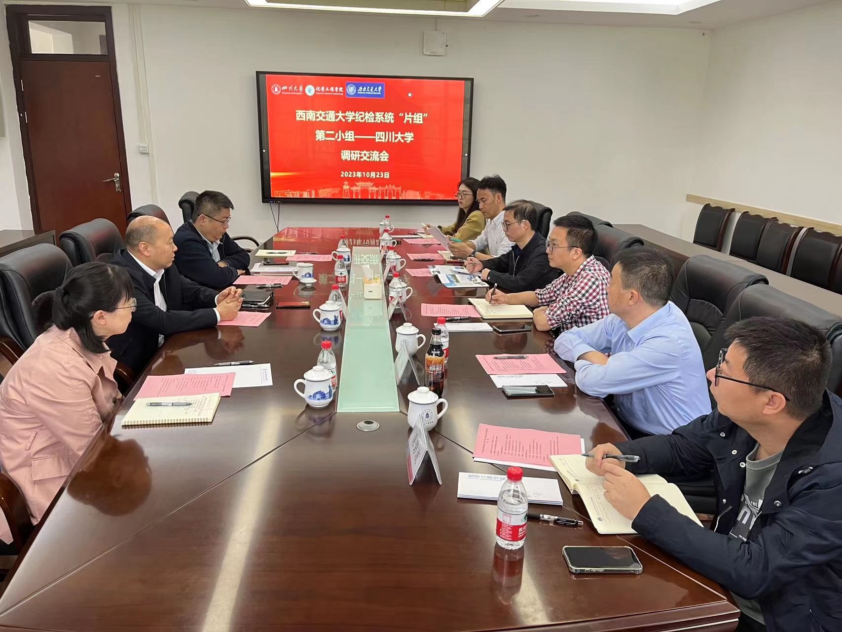 10月23日下午,西南交通大学纪检系统“片组”第二小组来院开展交流座谈。西南交通大学监察处副处长兼纪委办副主任、监督检查室主任杨育鸿,力学与航空航天学院党委副书记、纪委书记孔祥彬,人文学院党委副书记、纪委书记郭立昌,数学学院党委副书记、纪委书记黄祥、力学与航空航天学院专职组织员梁碧波和人文学院团委副书记刘晗悦参加会议,德赢AC米兰中国官方网站党委书记李天友,党委副书记兼纪委书记李德富,综合管理科科长杨谨瑗和党建科科长高敏参加调研会。