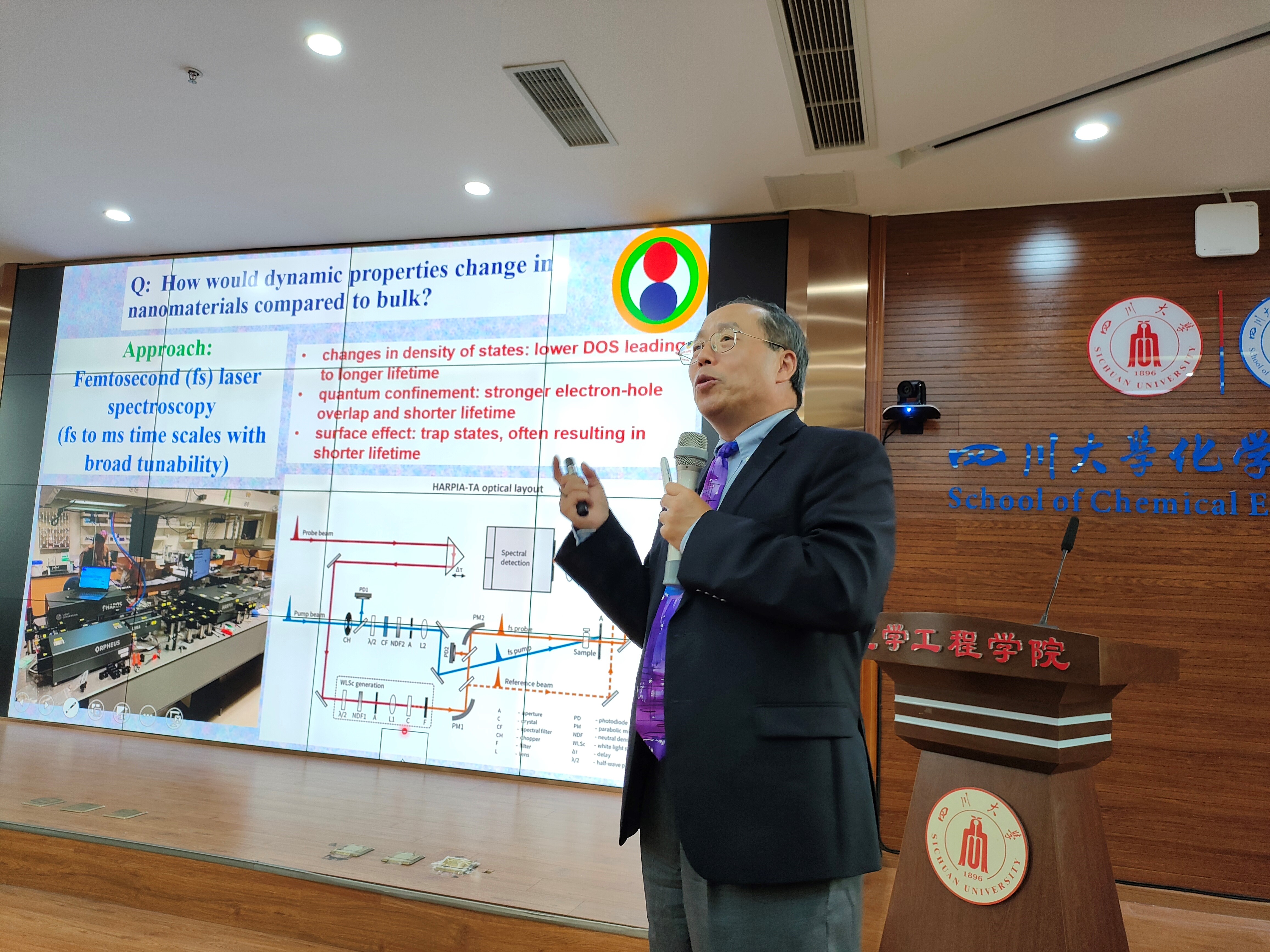 2023年10月24日上午9:00,加州大学圣克鲁斯分校杰出教授、Journal of Physical Chemistry Letters行政编辑和ACS Physical Chemistry Au高级编辑张金中先生应邀做客化工学术大讲堂系列讲座,并在德赢AC米兰中国官方网站313报告厅作了“Some Novel Properties of Nanostructured Metal Halide Perovskites: beyond Quantum Dots and towards ~1 nm Magic Sized Clusters and Molecular Clusters”为题的精彩学术报告。本次讲座特邀德赢余睽教授出席,余教授也带来了“Introduction to the Nobel Prize in Chemistry 2023”的精彩报告。此次讲座由化工学院王贵欣教授主持,来自化工学院、材料学院、物理学院、华西医院等相关学院师生聆听了本次学术报告。