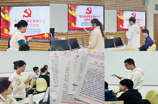 接着,雷金凤老师带领大家学习了学校组织部关于开展“我为高质量发展做什么”主题党日活动的通知,要求各位党员同学高度重视此次活动,积极学习思考,从自身实际出发,深入探讨青年在学业发展、学风建设、时代创新方面的作用,为学校的高质量发展做出贡献。