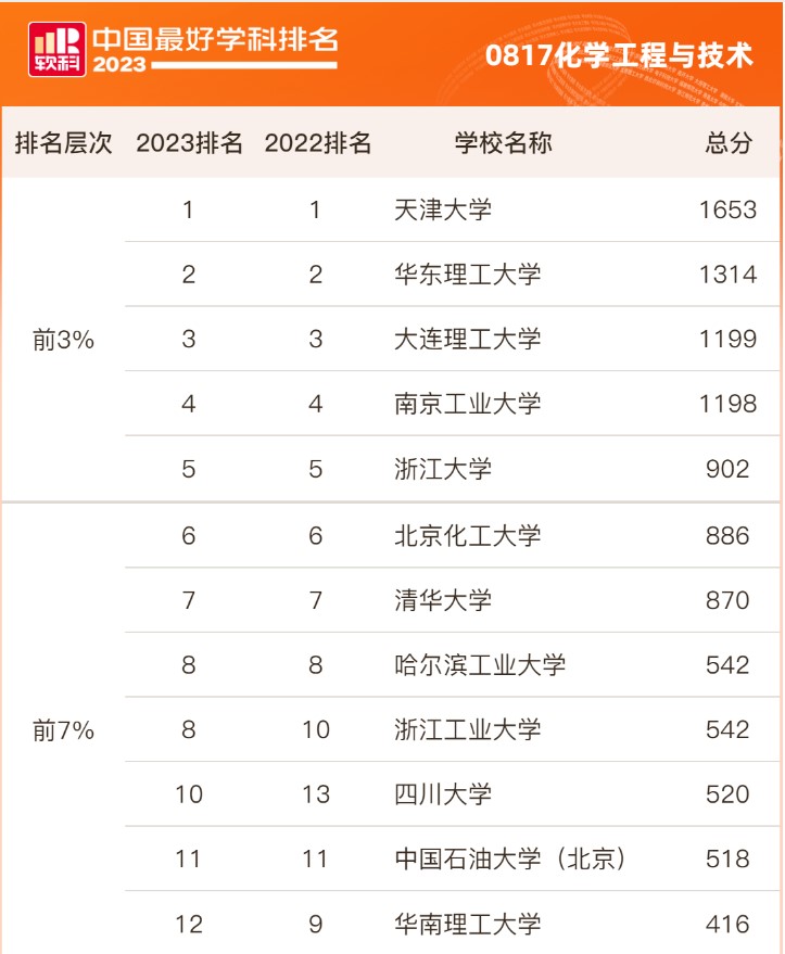2023年11月8日,高等教育评价专业机构软科正式发布“2023软科中国最好学科排名”。德赢AC米兰中国官方网站“化学工程与技术”学科位列全国高校第10、综合类大学第4,在2022年全国第13的基础上再上新台阶,连续两年入选中国一流学科。