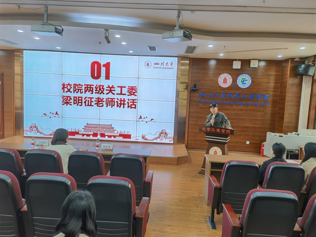 “立志做有理想、敢担当、能吃苦、肯奋斗的新时代好青年”是习近平总书记对青年的殷切希望。在本次活动中,首先由校院两级关工委梁明征老师发表讲话。梁老师以化工学院前辈们在化工行业发展的引领作用为例,给同学们介绍了他们为化工行业做出的贡献,让我们感受到他们锲而不舍、追求真理的精神。“理想信念是精神之钙”,梁老师之后就新时代青年所面临的责任和使命作了阐述,号召同学们明确自己作为新时代青年的责任和义务,坚定理想信念,增强爱党爱国情怀和砥砺前行的信心。最后以自身经验为基础,勉励同学们在研究生阶段平衡好学习与工作,理论联系实际,在实践中锻炼自己的本领。
