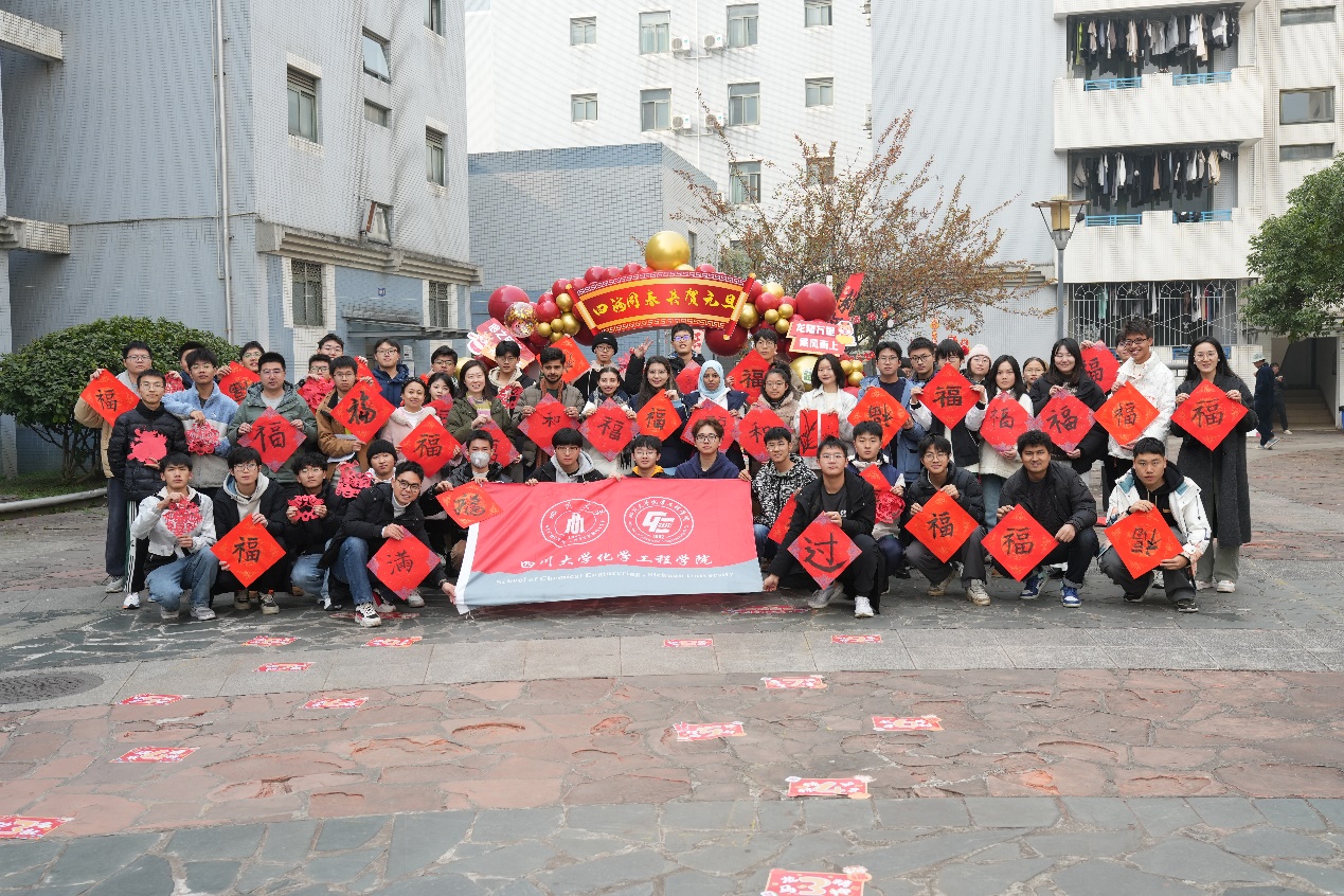 剪纸结束之后,同学们开始挥洒墨水,在红纸上写起了新春祝福,一个个“福”、“过”、“发”和“和”字分别代表了同学们在新年里的美好祝愿。留学生们也努力学习起来,一笔一画勾勒出“福”字。最后,留学生、港澳台学生和其他学生以及老师们一同写下了“和”字。