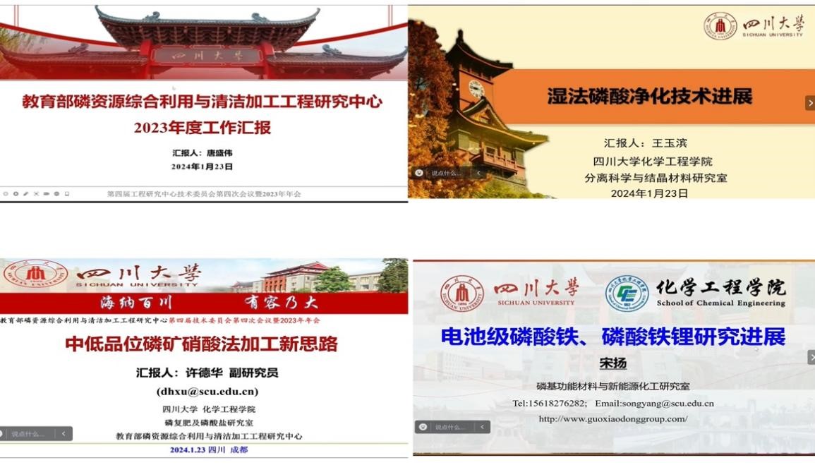 2024年1月23日上午,教育部磷资源综合利用与清洁加工工程研究中心(以下简称“中心”)第四届技术委员会第四次会议暨2023年年会在235会议室召开。会议以线上线下相结合的方式进行。德赢AC米兰中国官方网站杰出教授钟本和先生、德赢AC米兰中国官方网站化工学院院长郭孝东教授出席会议并讲话。中国科学院院士、中心技术委员会主任委员、宁波大学赵玉芬教授,中心技术委员会委员中国石油和化学工业联合会胡迁林副秘书长,中国磷复肥工业协会修学峰理事长,华东理工大学化工学院于建国教授,中科院过程所李会泉研究员,清华大学骆广生教授,昆明理工大学梅毅教授,中国农业科学院农业资源与农业区划研究所赵秉强研究员,郑州大学生态与环境学院院长汤建伟教授,德赢AC米兰中国官方网站新能源与低碳技术研究院院长梁斌教授等技术委员会委员,以及中心部分教师骨干等共计40余人参加了会议。会议分为开幕式和委员会会议两个环节,分别由中心主任、化工学院副院长唐盛伟教授和中心技术委员会委员德赢AC米兰中国官方网站王辛龙教授主持。