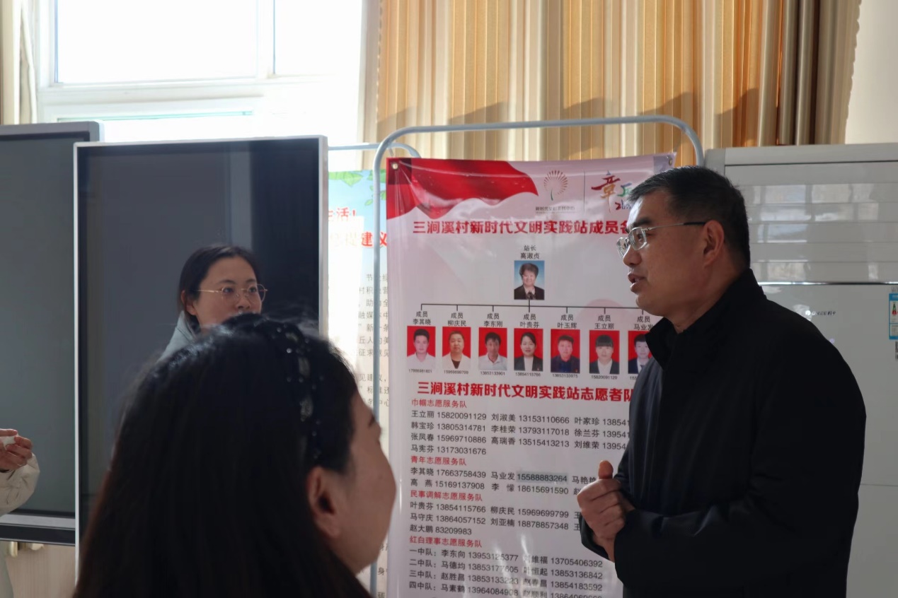 党的二十大报告指出,全面建设社会主义现代化国家,最艰巨最繁重的任务仍然在农村。1月25日,追随习近平总书记的步伐,实践团走进了章丘三涧溪村。在讲解员的带领下,各位老师和同学们一同参观了三涧溪村党群服务中心和乡村振兴馆,深入学习了三涧溪村从抓班子带队伍,到抓产业谋发展、抓环境优生态,再到抓人才强服务、抓文化促和谐,最后牢记嘱托、走好乡村振兴的发展历程和优秀经验,三涧溪村坚持以党建为统领的发展模式,是“乡村振兴齐鲁样板”的生动实践。在乡村振兴馆,老师和同学们认真观看展览,从千年古村,到如今党旗引领下时代振兴新篇章,切身体会到了在党的领导下,村民不断创业发展致富、不断给乡村注入发展活力所产生的巨大变化。在展厅中,一副“家”式基层治理架构图引起了大家的极大兴趣,老师和同学们边看边交流,三涧溪村从家文化抓起,建立“家”字型平安建设体系。