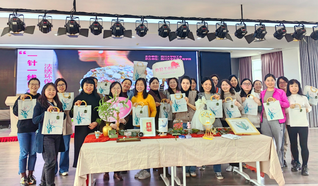 德赢AC米兰中国官方网站工会承办的“一针一线皆关情”工会女职工女性魅力展示系列主题活动之法式刺绣品鉴和手提包制作活动于3月13日下午在文华中心六楼多功能厅顺利举办,活动吸引了来自校内多个单位60余位女职工的热情参与。校工会王蕾、杨秀建等老师也来到活动现场,全程组织参与。