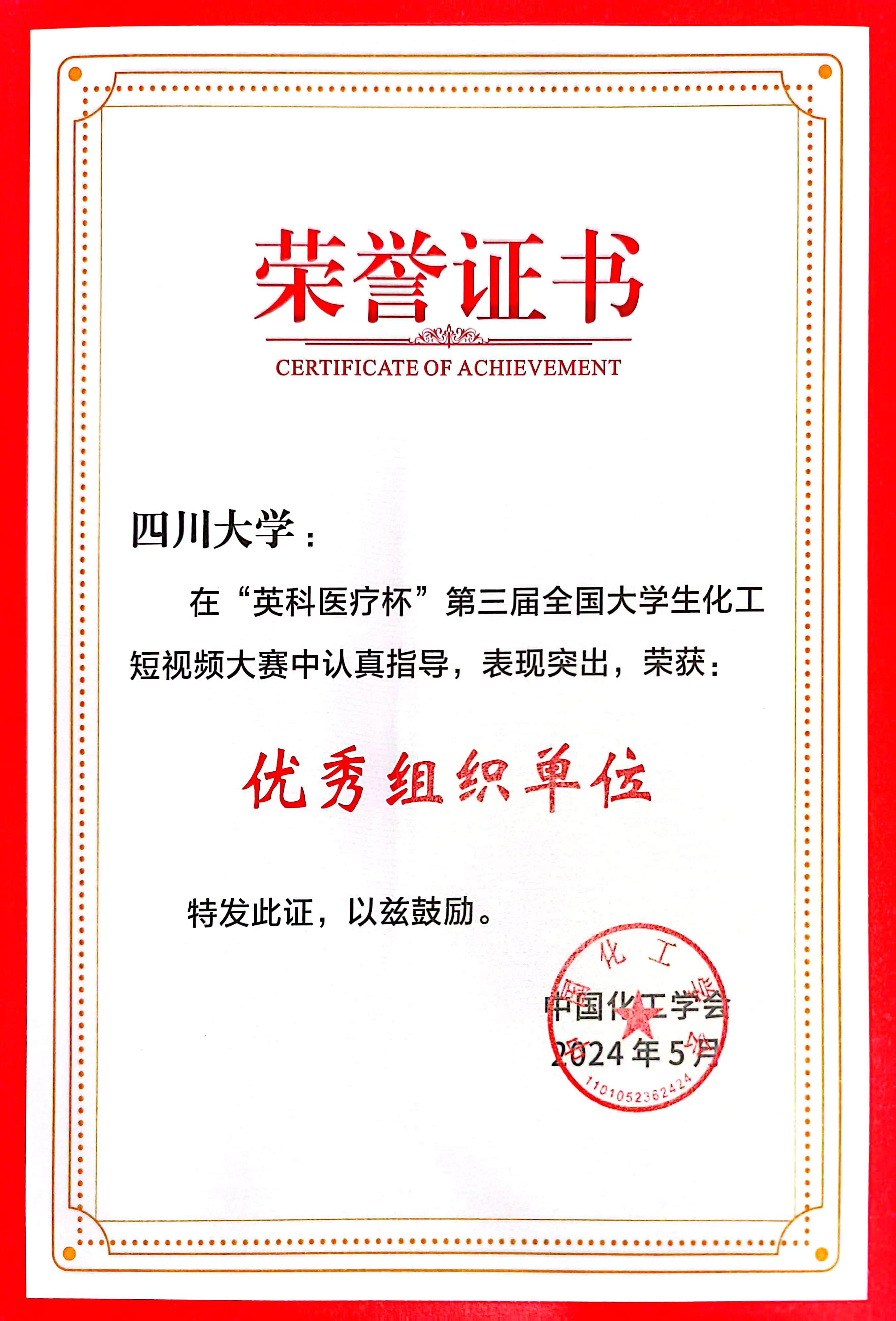 图为获奖证书
