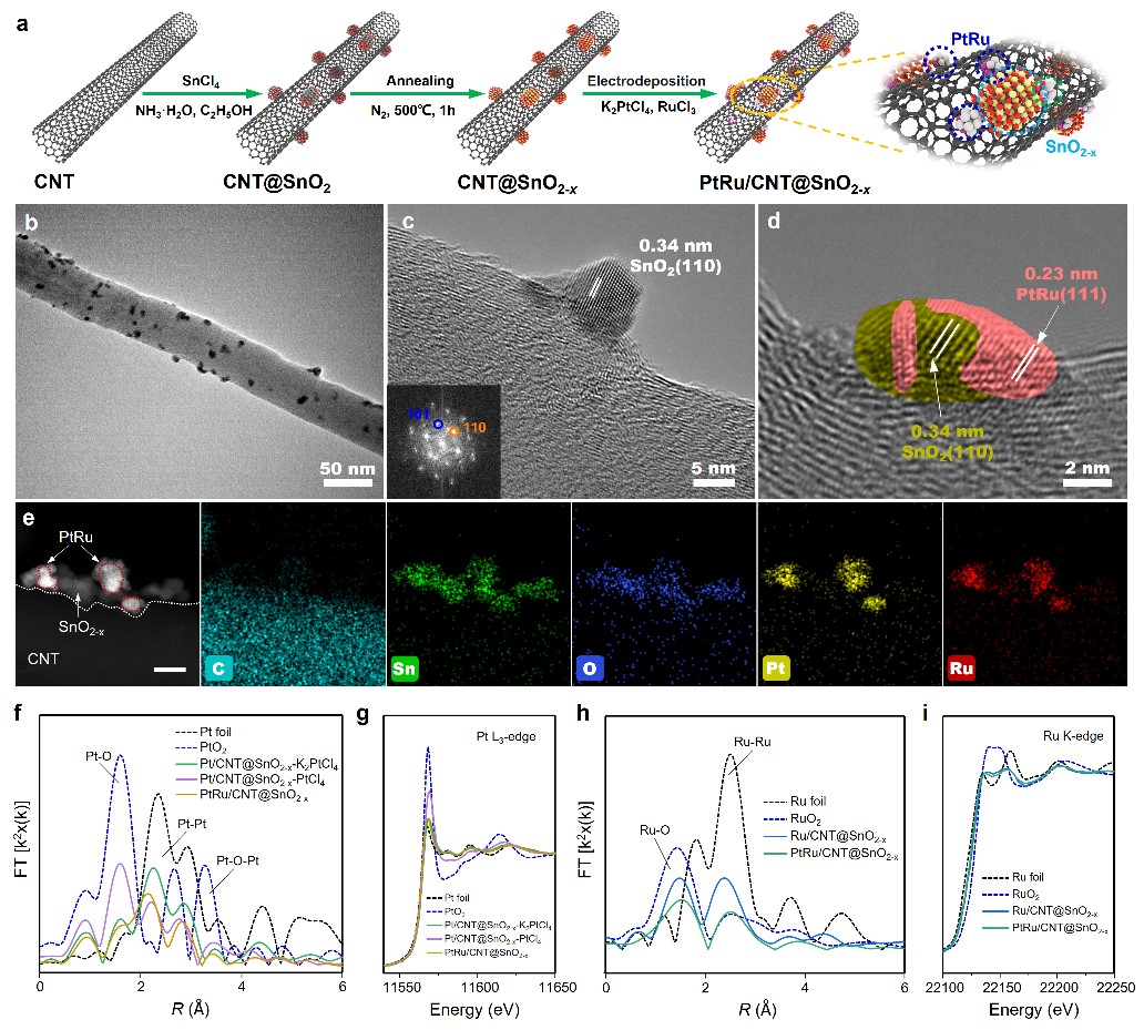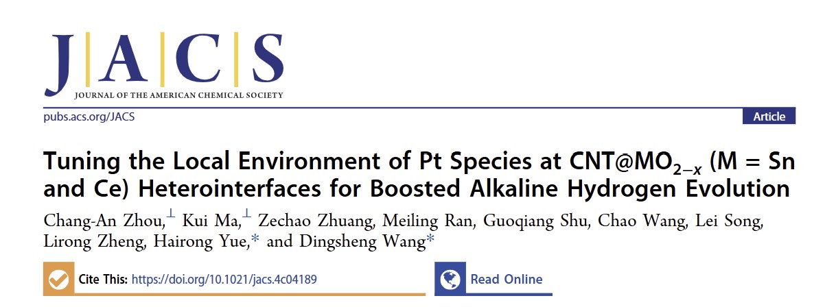 近日,德赢岳海荣教授团队与清华大学王定胜教授团队合作提出了一种高效复合结构(PtRu/CNT@MO2-x)碱性HER催化剂的设计策略。通过氧化物载体优化、Pt物种调控和修饰,改善催化剂导电性和调控异质界面局域环境,平衡了活性位点上H吸脱附、H2O吸附和解离行为,实现了碱性介质中的Volmer反应和H*脱附动力学同步加速,从而增强了Pt基催化剂的碱性HER性能。相关工作以“Tuning the Local Environment of Pt Species at CNT@MO2-x(M = Sn and Ce) Heterointerfaces for Boosted Alkaline Hydrogen Evolution”发表在国际顶级期刊《Journal of the American Chemical Society》。德赢AC米兰中国官方网站为论文第一单位,化工学院岳海荣教授、清华大学王定胜教授为该论文通讯作者,化工学院周昶安助理研究员、马奎副教授为论文第一作者。
