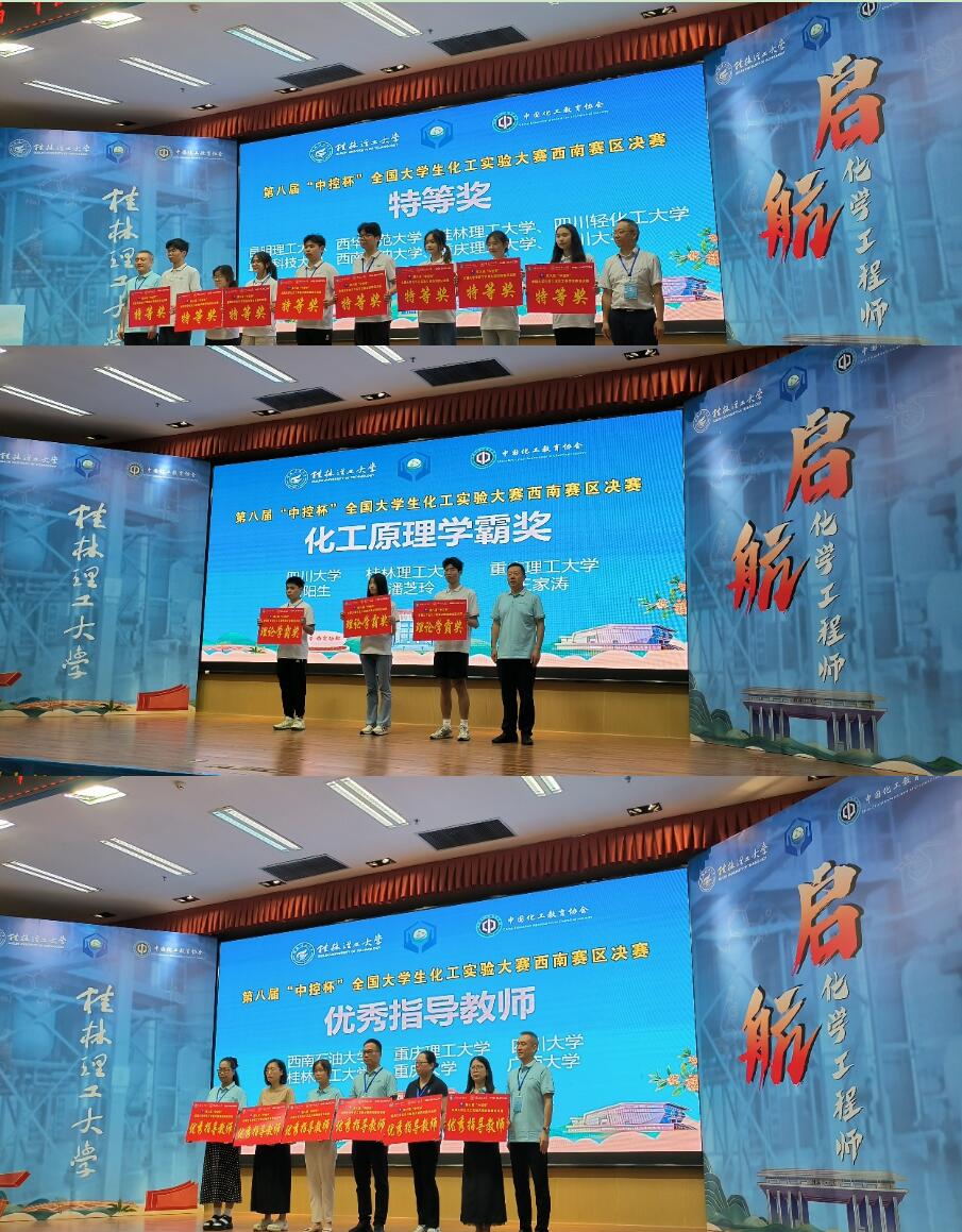 由程远贵、王袁隆和刘长军三位老师带队,德赢付阳生、陈庚望和张垣栋三位同学组建的参赛队于2025年7月18日-7月20日赴桂林理工大学与来自西南赛区的共48支队伍一起参加了第八届全国大学生化工实验大赛西南赛区决赛。
