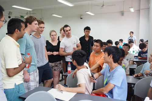 Dewei Qi教授的课程内容丰富生动、形式新颖独特,让同学们享受了一次美国大学里的精彩课堂。下课后,中外学生久久不肯离去,针对课堂上学习的知识点,一起展开讨论,并认真向漆教授请教。中外学生之间积极交换联系方式,相约一起学习,一起玩耍,相信在国际周期间,中外学生收获的不仅是知识,还有浓浓的友谊。