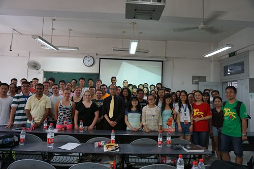 课程伊始,在简单的欢迎仪式后,很快就拉近了远道而来的Dewei Qi教授及留学生们和我们的学生距离。随后,Dewei Qi教授分享了他多年求学、教学经历。在教授的鼓励下,在座的每一位留学生和中国学生都进行了自我介绍。课间休息,这些家乡遍及美国、多米尼加、印度、加拿大、台湾的留学生,与我国学生其乐融融,话专业、聊兴趣、谈美食,其乐融融。