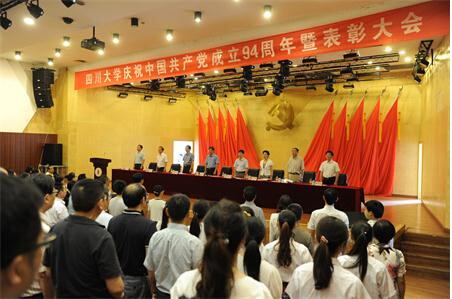 7月1日下午,德赢AC米兰中国官方网站庆祝中国共产党建党94周年暨先进基层党组织、优秀共产党员和优秀党务工作者表彰大会在望江校区文华活动中心二楼报告厅举行。