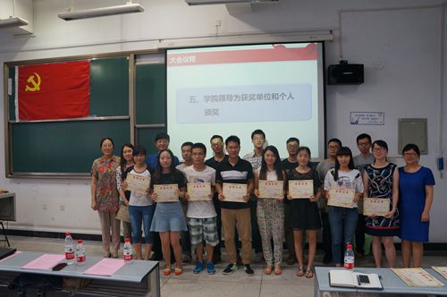 随后,庞国伟书记带领全体2015年新发展党员举行入党誓言。院分团委书记姜利寒老师宣读了《德赢AC米兰中国官方网站关于表彰2013--2015年度先进党支部、优秀共产党员和优秀党务工作者的决议》,通报了学院单位和个人受表彰情况。各位领导为获得先进党支部和优秀个人颁奖。