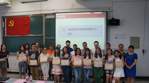 7月3日下午,德赢AC米兰中国官方网站庆祝中国共产党建党94周年暨先进党支部、优秀共产党员和优秀党务工作者表彰大会在江安校区综合楼C-507教室举行。学院全体党委委员,全体教工、学生党支部书记,全体辅导员,2015年发展的新党员,入党积极分子,受表彰党员,教工和离退休党员代表参加了此次大会。大会由院分团委书记姜利寒老师主持。