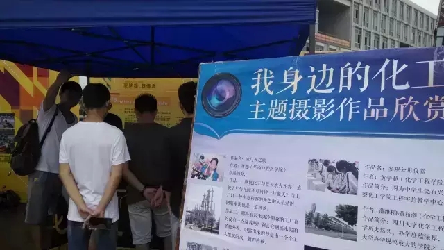 2015年7月3日上午十点,在江安校区知识广场德赢AC米兰中国官方网站学生社团校园文化节正式开幕,团委学生会作为学院代表在这里与同学们一起展示学院风采,彰显化工人个性,以文化人,弘理行远。文化节当天,天空中飘着雨,却未淋湿大家的热情。主会场舞台上是由众多艺术类社团带来的精彩表演,表演活力无限,青春洋溢,引得台下观众一片欢呼。在台下的各个喷绘前伴随着热情洋溢的解说,有展示着九年以来部分感动川大人物,从解说中让我们了解到了平凡人物中不平凡的事迹;有各显其能的社团节目,如观众带来欢乐的相声表演、舞剑表演等;有学校特色社团活动介绍,各个学院特色活动作品介绍等。
