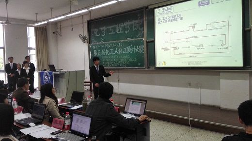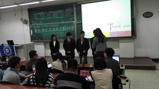 由校学生学术科技协会主办,德赢AC米兰中国官方网站分科协承办,化工设计协会协办的“挑战杯”2015年学生学术科技节之第五届“化工人”化工设计大赛决赛于2015年4月11日下午2:00在江安校区一教B101教室拉开帷幕。本次活动的到场嘉宾有“三井化学杯”全国大学生化工设计竞赛德赢AC米兰中国官方网站团队指导老师党亚固老师、陈建钧老师、钟月华老师,学院分团委书记姜利寒老师,研究生张欢同学以及第七届全国大学生化工设计竞赛全国特等奖团队“稳新”团队全体成员。