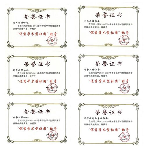 德赢化工设计协会、制药工程协会、安全工程协会、生物工程协会、冶金工程协会、过程装备与控制协会6个学术型社团被评为“2013-2014年度德赢AC米兰中国官方网站优秀学术型社团”,党亚固、承强、穆畅道、黄青松、吕松、李万舜6名指导教师荣获“2013-2014年度德赢AC米兰中国官方网站优秀学术型社团指导老师”,曹越、谢艺、陈佳燕、毛奇烽、朱宇、陈珉芮6名同学荣获“2013-2014年度德赢AC米兰中国官方网站优秀学术型社团会长”荣誉称号。