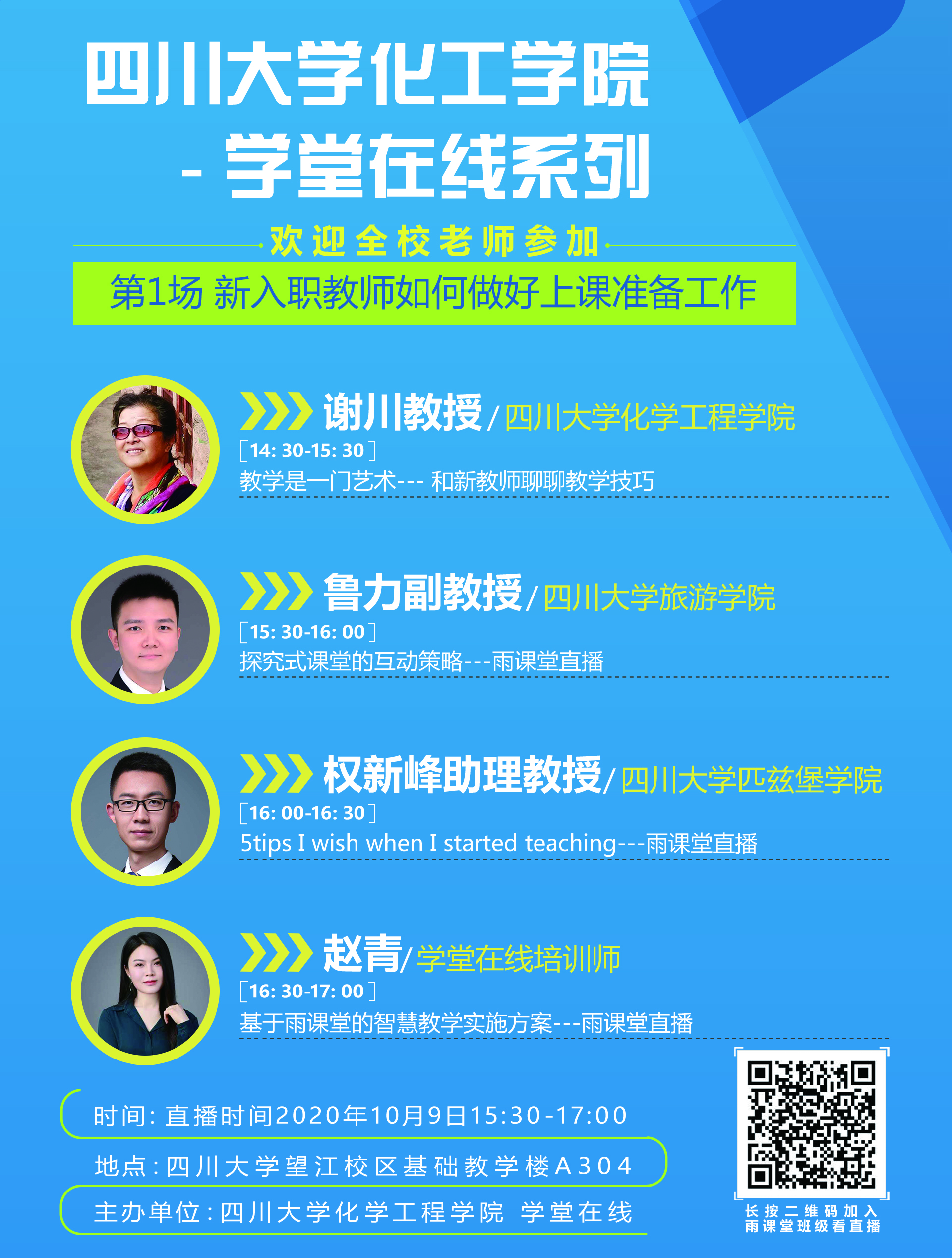 德赢AC米兰中国官方网站-学堂在线系列教发活动第1场将于2020年10月9日14:30于望江基教楼A304举行(线上直播为15:30,链接请见海报),主题为新入职教师如何做好上课准备工作,包括教学技巧,互动策略、准备建议和信息化教学工具使用,诚邀全校老师参加。