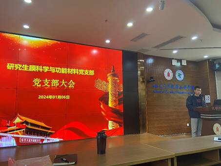 2024年1月6日下午13:20,中共德赢AC米兰中国官方网站研究生膜科学与功能材料党支部于化工楼313会议室召开了接收预备党员和预备党员转正支部大会。本次大会由支部书记王坡同志主持,分为两个议程,主要讨论和审议接收党员发展对象杨丽、赖俊华同志为预备党员及陆广源、王志巍等六位预备党员转正的相关事宜。