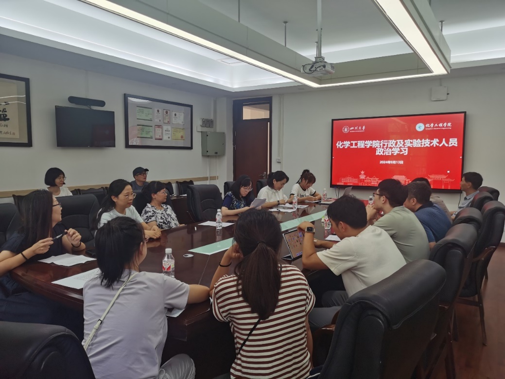 2024年9月13日下午,德赢AC米兰中国官方网站全体行政老师和工程实验教学中心全体实验技术人员在望江校区化工学院235会议室组织开展了政治学习和支部学习。本次会议由高敏同志主持。