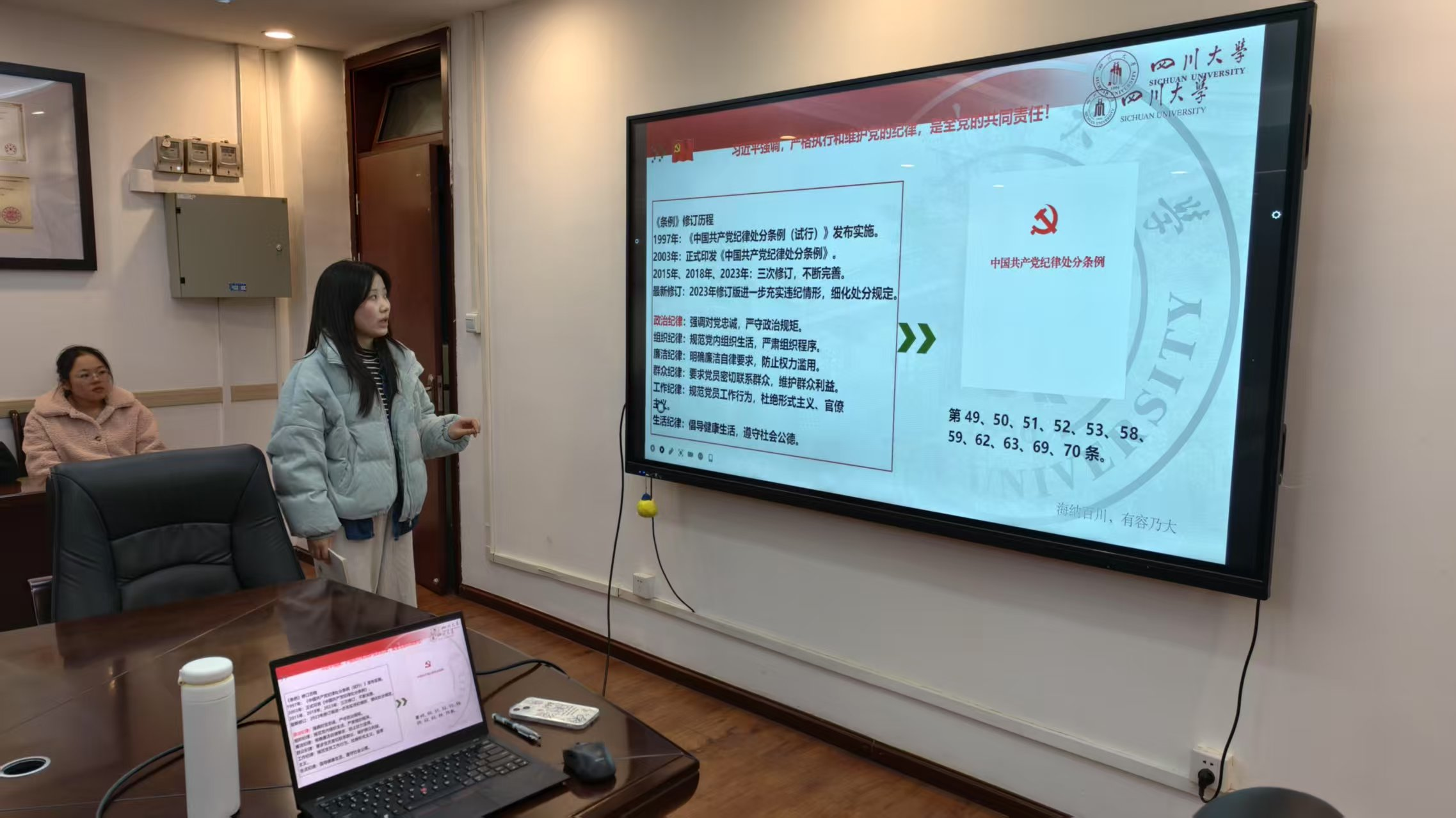 会议伊始,支部书记刘思铃同志带领与会党员集中学习了《中国共产党纪律处分条例》中的重要条款,明确纪律红线,强化政治意识和规矩意识。结合案例剖析,深入理解纪律建设在科研与工作中的实践意义,要求党员以案为鉴,筑牢思想防线。
