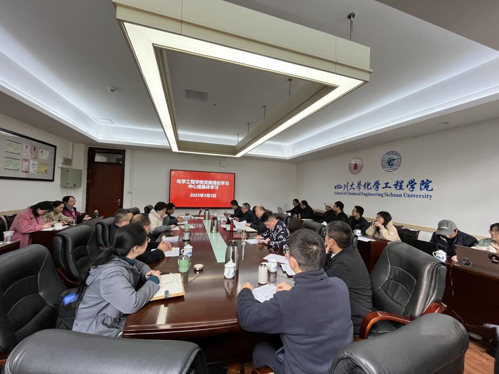 李天友表示,《纲要》是全面推进教育科技人才一体统筹发展、提升国家创新体系整体效能的顶层制度安排,对落实党的二十大重大部署,更好发挥教育强国建设在全面推进强国建设、民族复兴伟业中的先导任务、坚实基础、战略支撑作用,具有重大而深远的意义。学院要深刻领悟习近平总书记关于教育的重要论述的精髓要义和党中央制定《纲要》的精神实质,牢牢把握教育改革发展的“九个坚持”,一体推进教育发展、科技创新、人才培养。要对标《纲要》关键领域和重点任务,研究编制学院“十五五”事业发展规划,制定好学院2025年工作要点。要全面落实学校“高质量发展30条”以及“1+5”“1+3”系列文件,确保重点工作落地见效,推动学院高质量发展,为教育强国建设、民族复兴伟业作出川大化工新的贡献。