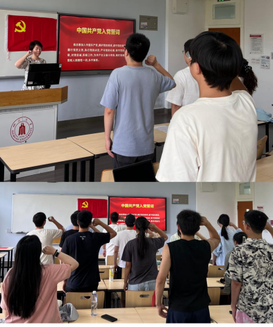 全体本科毕业生党员在学院党委副书记姜利寒老师的带领下,举起右拳,重温入党誓词。