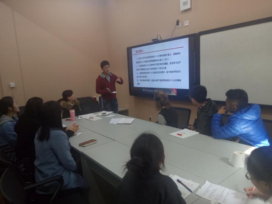 随后党支部副书记李福林组织开展了十九大精神学习组织生活会,会上他解读了“中共德赢AC米兰中国官方网站委员会关于认真学习宣传贯彻党的十九大精神的通知”,目的是让各党员充分认识学习宣传贯彻党的十九大精神的重大意义,准确领会把握党的十九大精神的思想精髓和核心要义,希望各党员勤学励志、奋发图强,积极培育和践行社会主义核心价值观,将个人成长的青春梦和中华民族伟大复兴的中国梦有机结合起来。