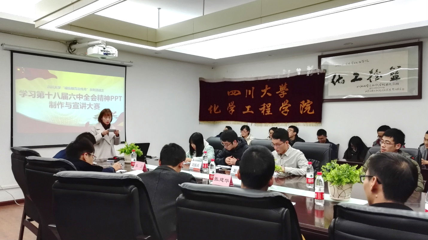 2016年11月23日19点,德赢AC米兰中国官方网站“诚信教育宣传月”系列活动之学习第十八届六中全会精神PPT制作与宣讲大赛在化工楼235顺利举行,本次活动由德赢AC米兰中国官方网站研究生分会主办。参加这次PPT大赛的全部为来自德赢AC米兰中国官方网站的全部14个研究生党支部。德赢AC米兰中国官方网站思政辅导员司振兵老师、德赢AC米兰中国官方网站党政办公室高敏老师、德赢AC米兰中国官方网站兼职辅导员赵磊学长、德赢AC米兰中国官方网站研究生会主席张川、奚月恒、张建华学长出席了本次活动,并担任评委嘉宾。活动由2016级应化专业研究生徐双凤主持。